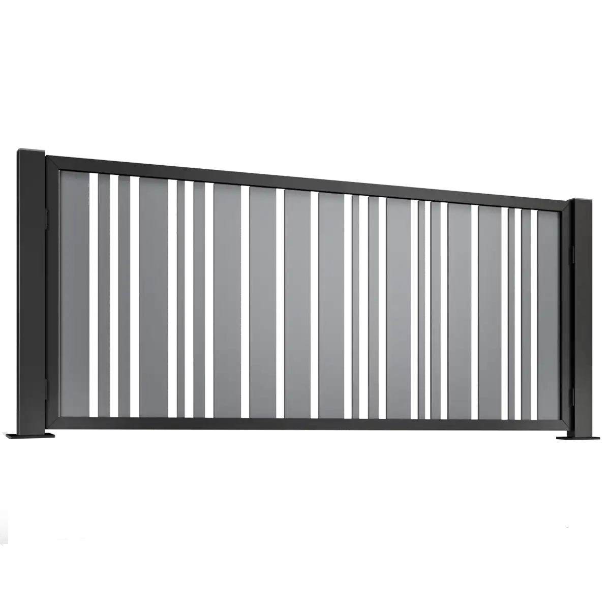 Kompletne, przygotowane do montażu aluminiowe przęsło wypełnione aluminiowymi pionowymi profilami o zmiennej szerokości w dowolnym kolorze z palety RAL w konstrukcji ramowej. Aluminiowe przęsło ogrodzeniowe w nowoczesnej minimalistycznej formie, która wpasuje się zarówno w nowoczesną, jak i tradycyjną architekturę. Wyróżniająca estetyka i wykonanie w technologii bez spawania dopracowane w każdym szczególe.  Przęsło produkowane z aluminium będącego materiałem o bardzo wysokiej odporności na korozję i niekorzystne warunki atmosferyczne.