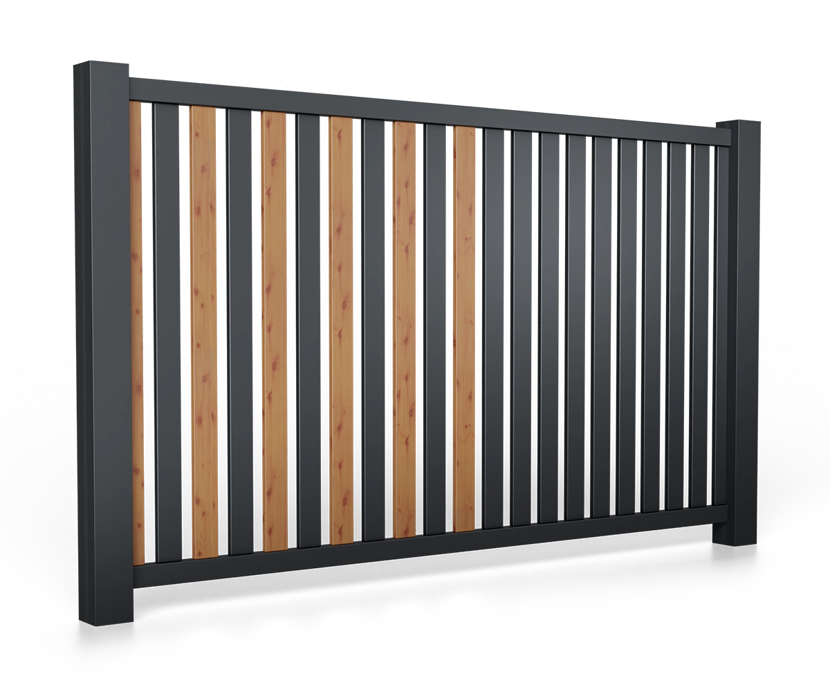 Ogrodzenie produkowane w technologii bez spawania w całości z aluminium malowanego proszkowo na dowolny kolor z palety RAL oraz w kolorach drewnopodobnych.