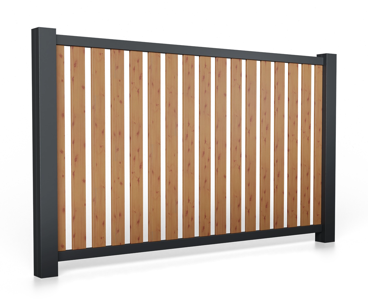 Ogrodzenie produkowane w technologii bez spawania w całości z aluminium malowanego proszkowo na dowolny kolor z palety RAL oraz w kolorach drewnopodobnych.