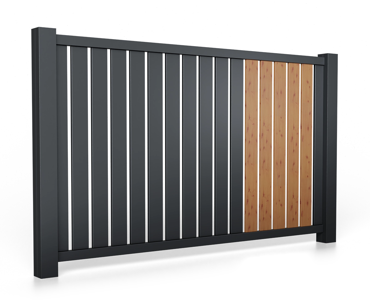 Ogrodzenie produkowane w technologii bez spawania w całości z aluminium malowanego proszkowo na dowolny kolor z palety RAL oraz w kolorach drewnopodobnych.