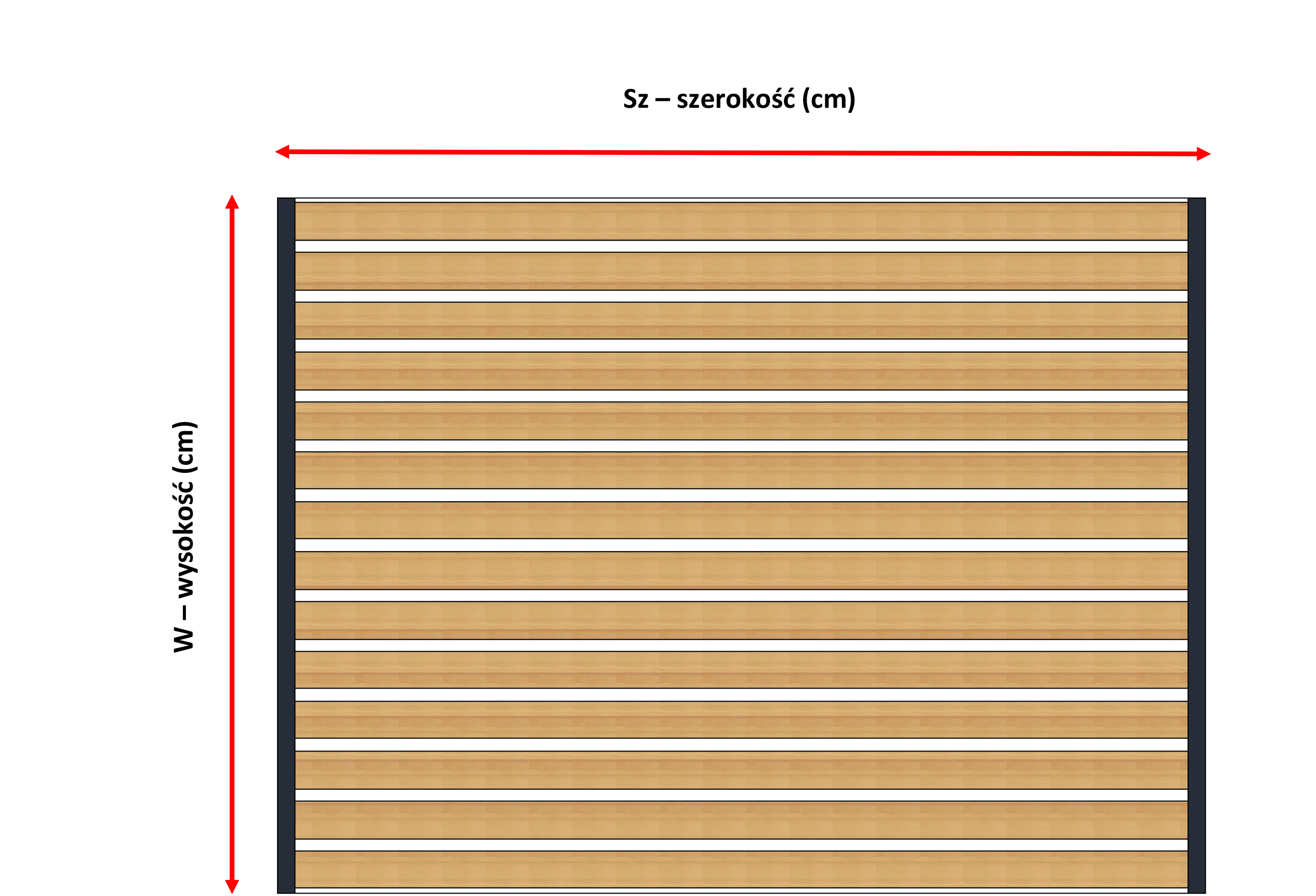 W - wysokość przęsła (wymiar zamówieniowy) to wysokość konstrukcji zamawianego przęsła. Zalecamy wybór przęsła o wysokości W równej wysokości światła pomiędzy słupkami pomniejszonej o 5 cm.