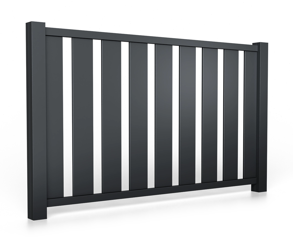 Kompletne, przygotowane do samodzielnego montażu aluminiowe przęsło wypełnione aluminiowymi pionowymi profilami w dowolnym kolorze z palety RAL. Aluminiowe przęsło ogrodzeniowe w nowoczesnej minimalistycznej formie, która wpasuje się zarówno w nowoczesną, jak i tradycyjną architekturę. Wyróżniająca estetyka i wykonanie w technologii bez spawania dopracowane w każdym szczególe.  Przęsło produkowane z aluminium będącego materiałem o bardzo wysokiej odporności na korozję i niekorzystne warunki atmosferyczne.