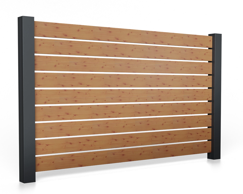 Ogrodzenie produkowane w technologii bez spawania w całości z aluminium malowanego proszkowo na dowolny kolor z palety RAL oraz w kolorach drewnopodobnych.