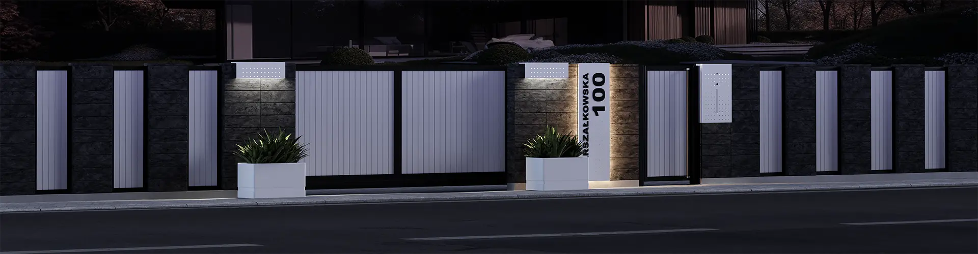 Kompletny nowoczesny system ogrodzeniowy wykonany z aluminium obejmujący produkty: