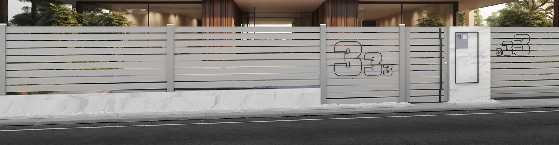 Ogrodzenie produkowane w technologii bez spawania w całości z aluminium malowanego proszkowo na dowolny kolor z palety RAL oraz w kolorach drewnopodobnych.